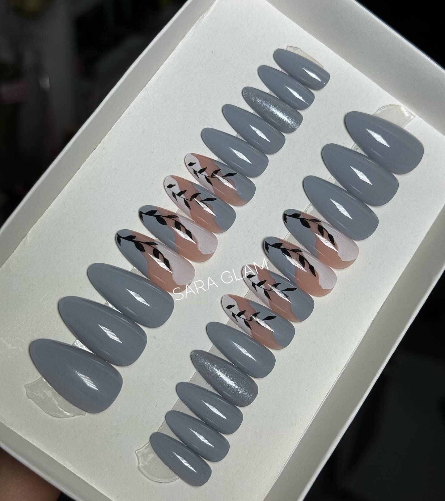 Press on nails bleu gris avec décoration