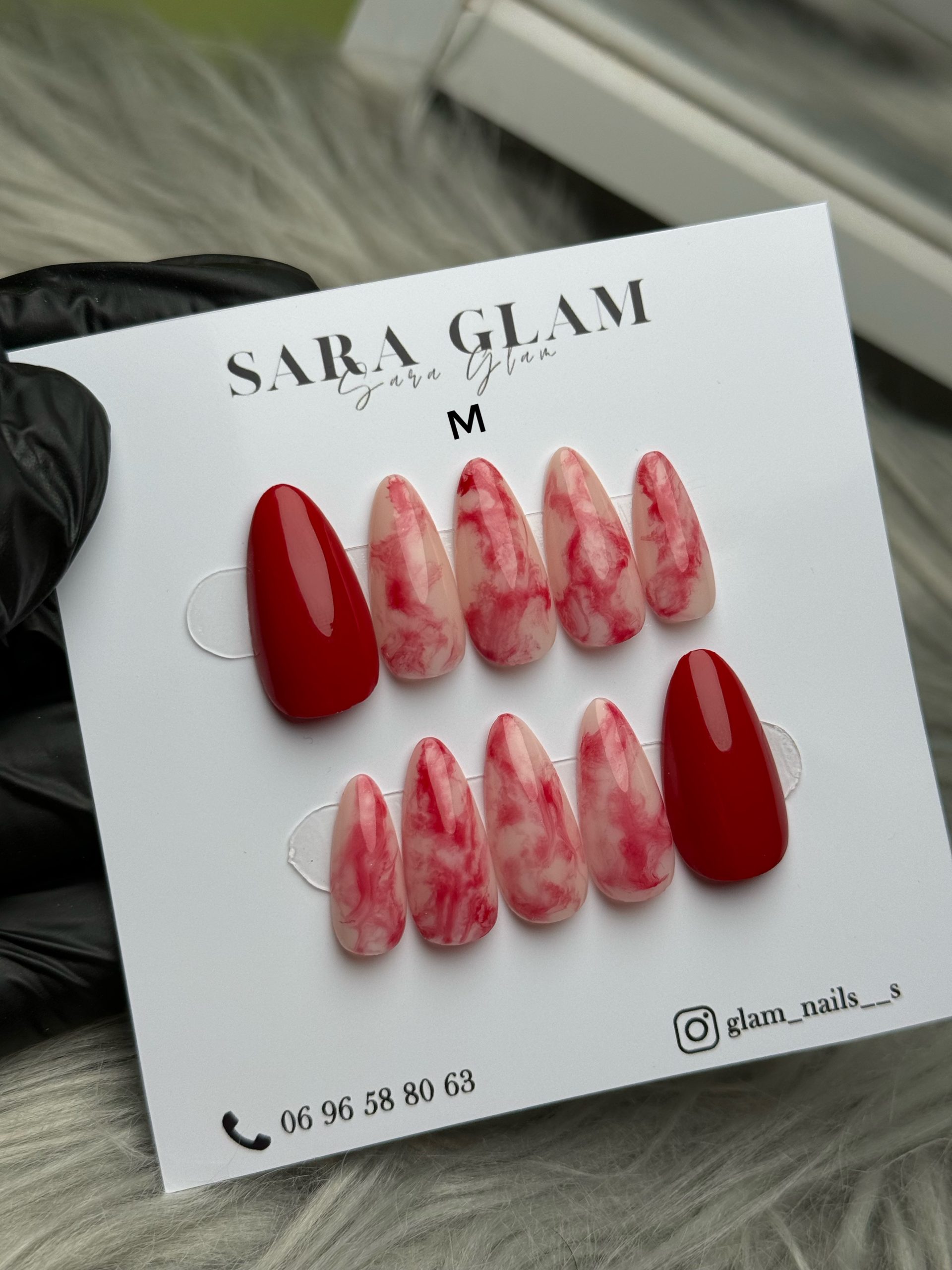 Press on nails en rouge marbré taille M
