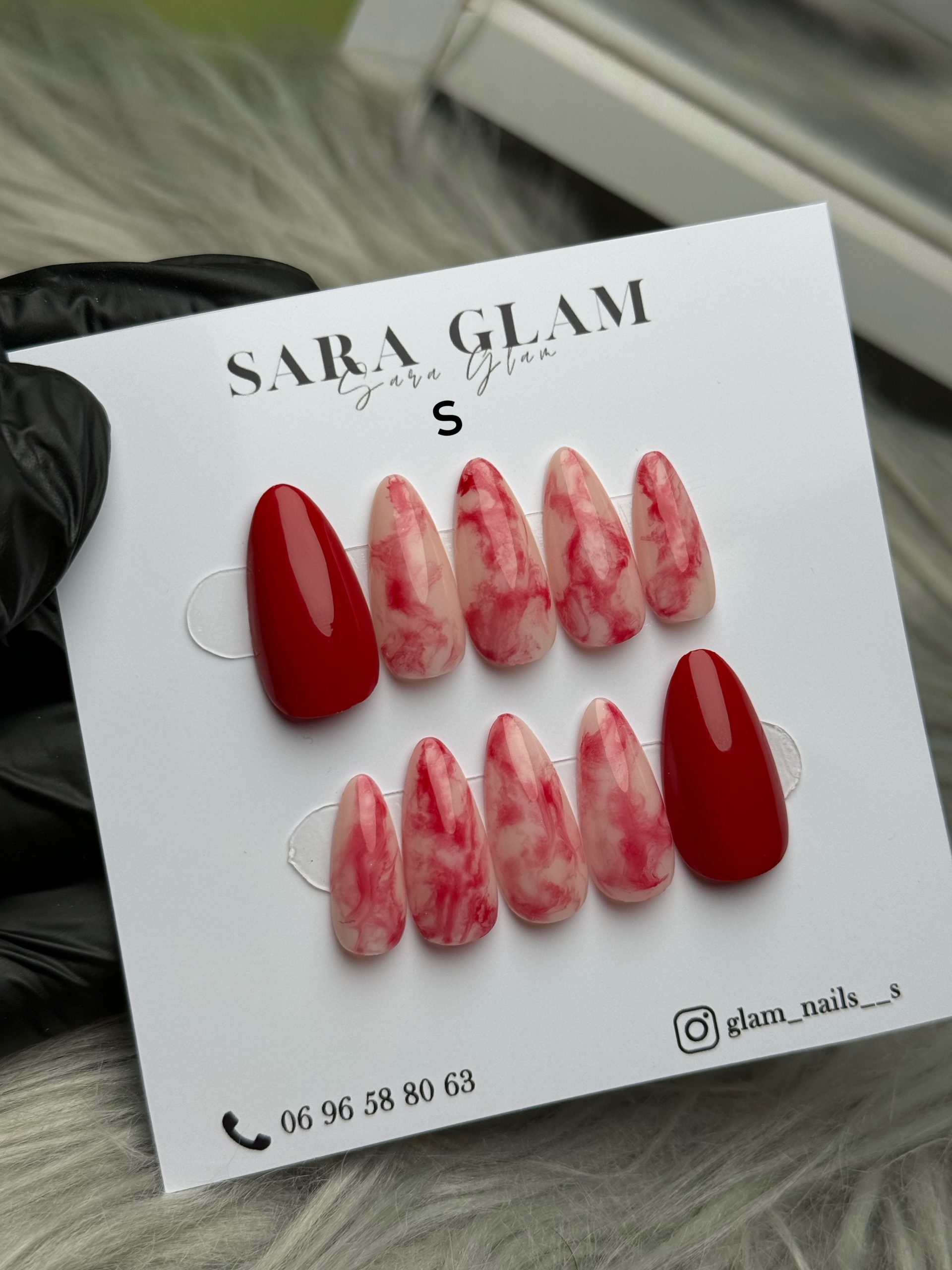 Press on nails en rouge marbré taille S